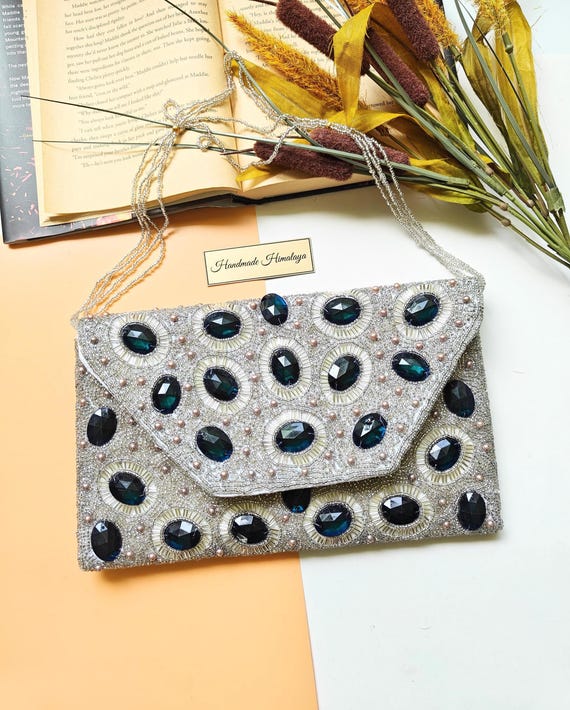 Green Peacock Beaded Clutch, Peacock Feather Bead Purse, Party Evening Bag Crossbody