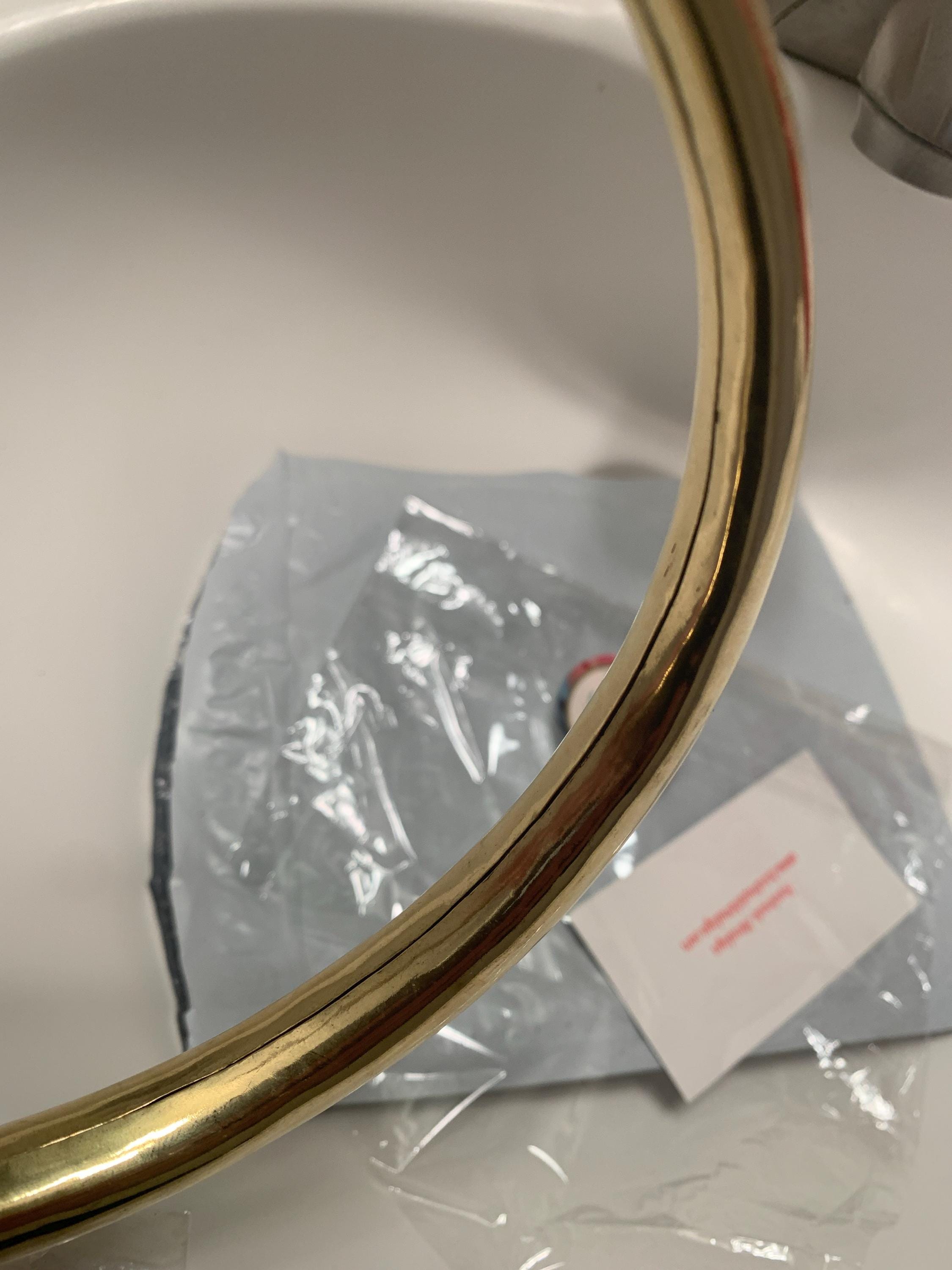 Not a brass look at all. Looks like costume jewelry fake gold. It’s hollow. No weight to it and it has a sharp seam on the inside. Also arrived with a dent because the item was put into a slim bubble packer with no additional packing material other than the thin plastic sleeve it came in. Definitely not worth it. I don’t see a way to return this item either.