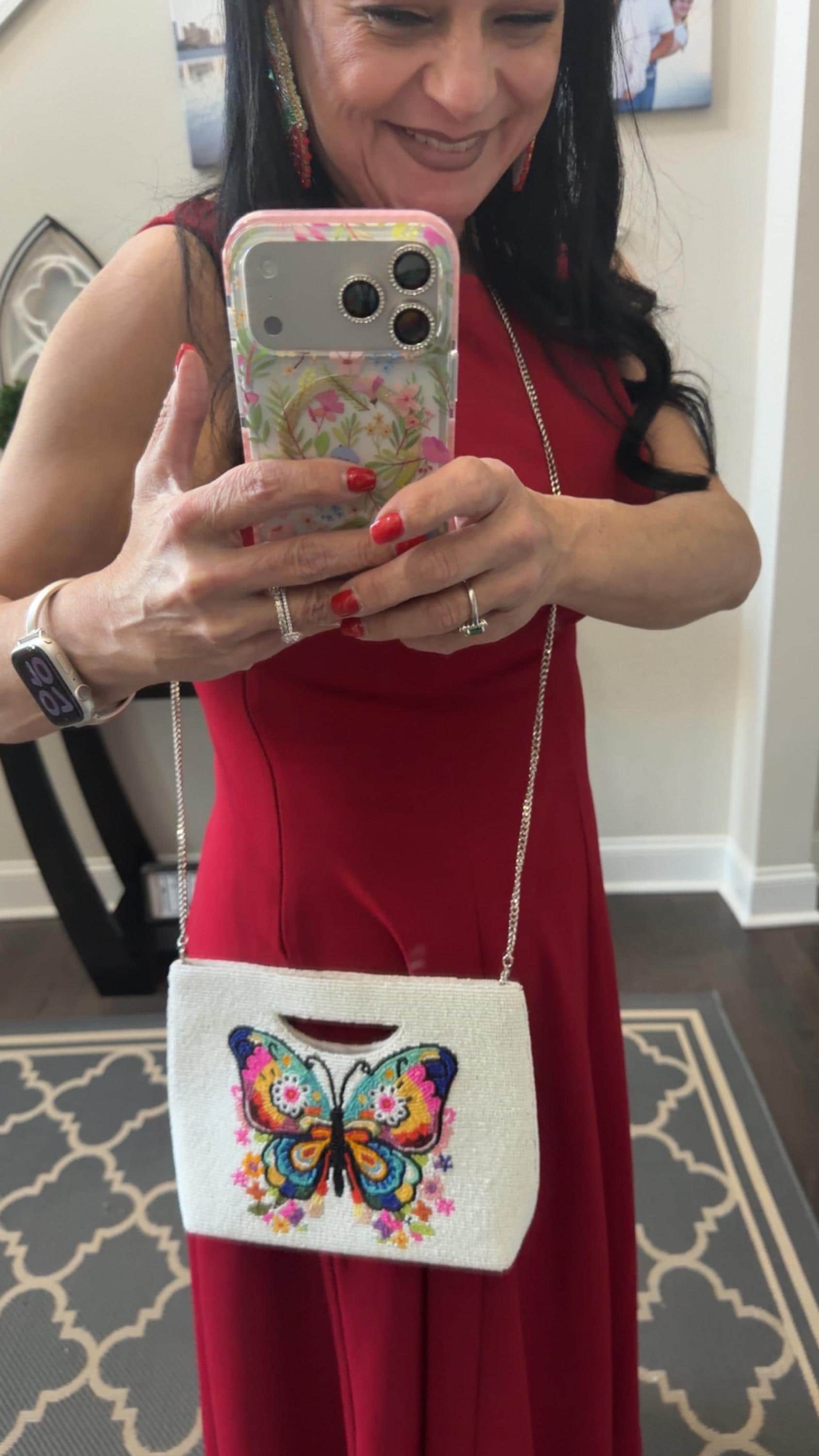 Perfect for shoppers searching for a butterfly purse, a colorful beaded bag, a handmade statement clutch, or an artistic evening handbag.